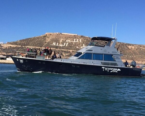 As you cruise along the coastline, keep an eye on the water—you may be lucky enough to spot dolphins swimming alongside the boat!